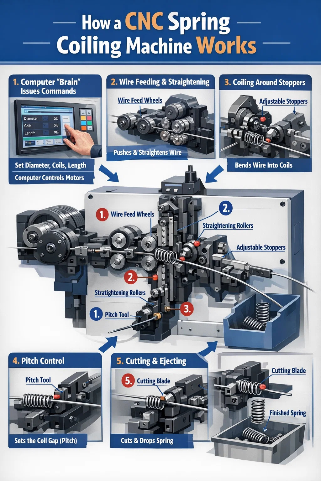 ◾ Máy cuộn lò xo CNC hoạt động như thế nào?